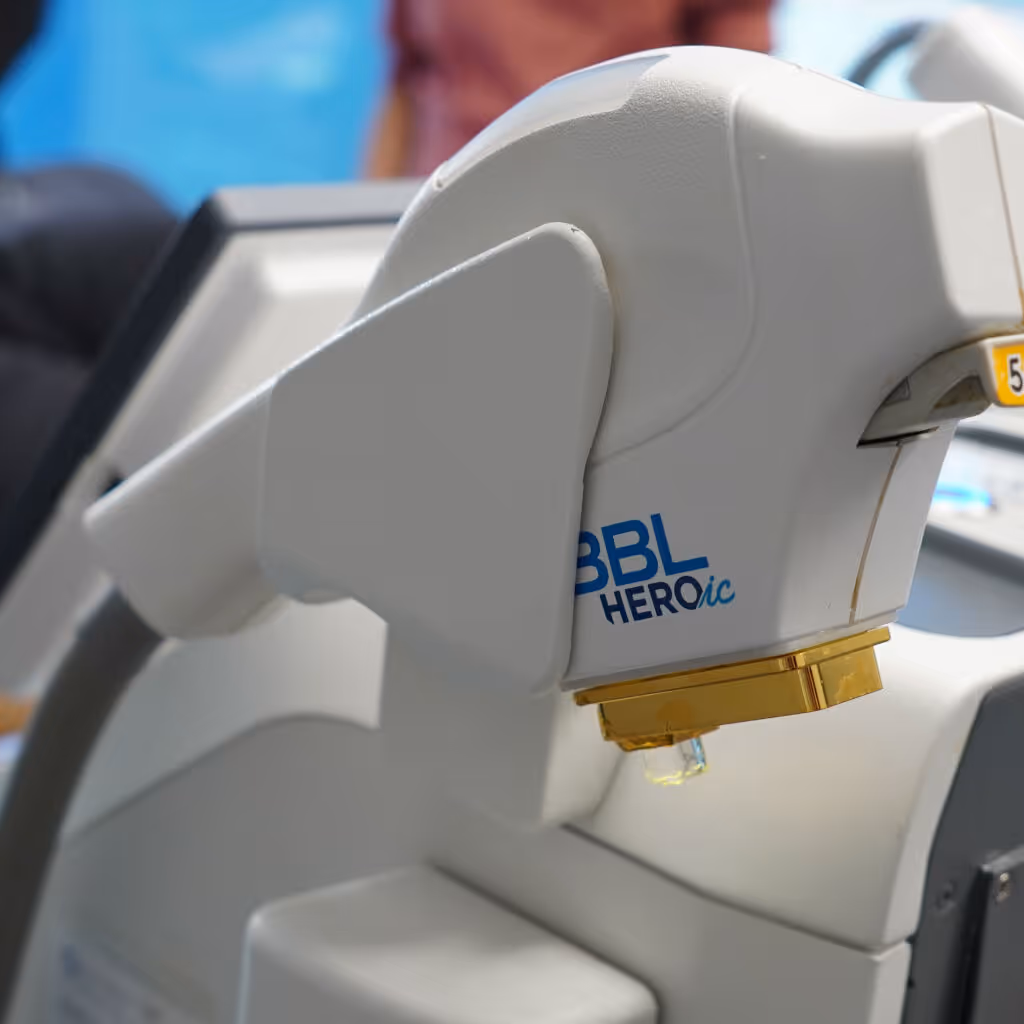 BBL HEROic is a next-generation light-based system used to address pigmentation, redness, and early signs of aging by delivering controlled energy efficiently across targeted skin areas with minimal disruption.